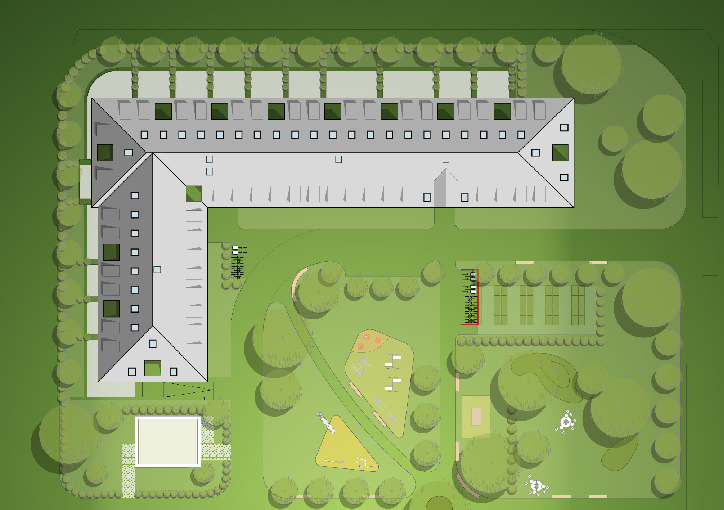 Das Krampnitz Carré liegt auf einem 14.645 m2 großen Grundstück.