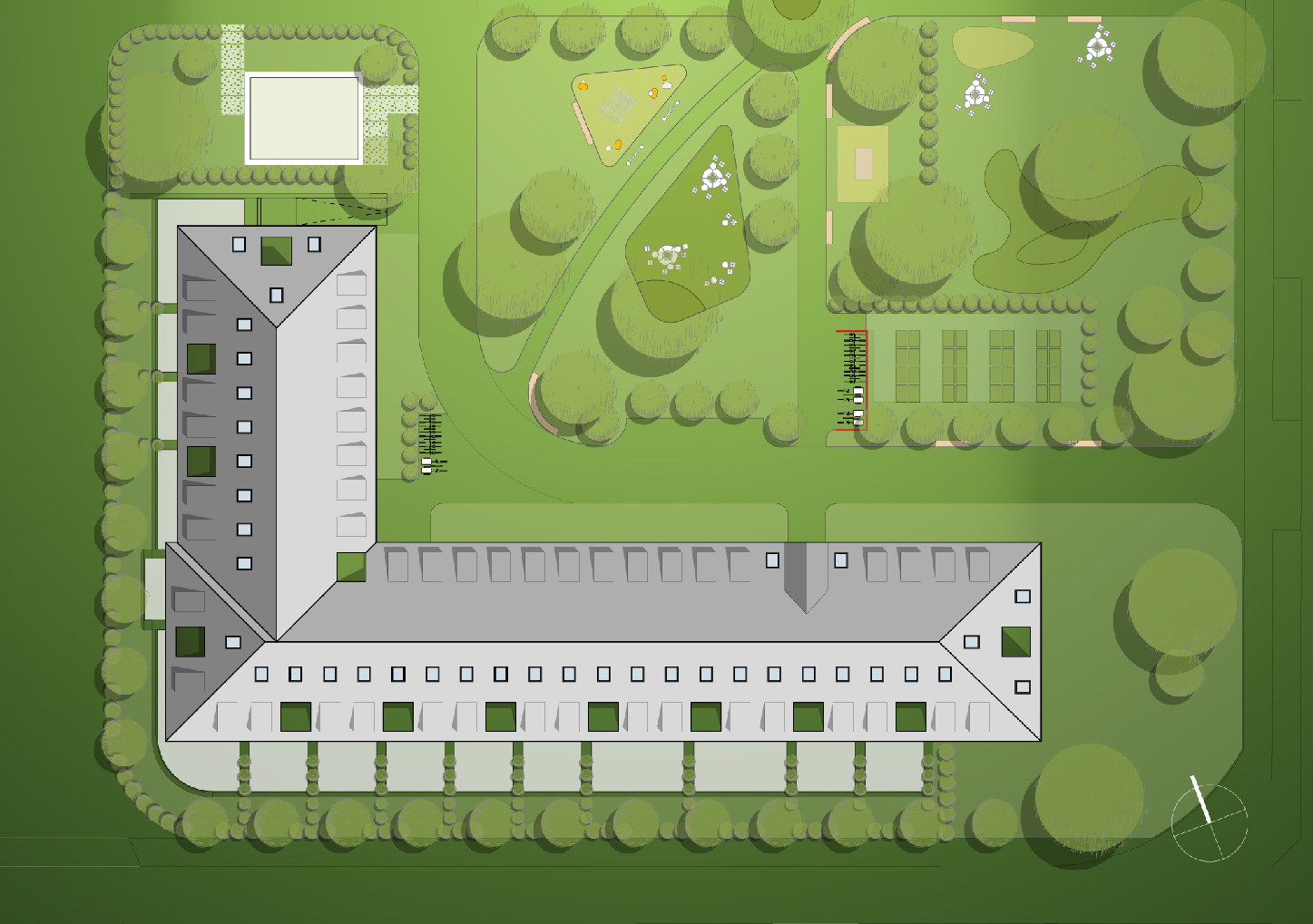 Das Krampnitz Carré liegt auf einem 14.645 m2 großen Grundstück.